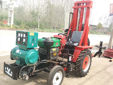 该款改装在拖拉机上的车载式打井机,是东泰井机研发的采用电机形式,在拖拉机头上带上发电机,解决了野外无电的干扰。在使用过程中,大大提升了打井的速度,采用7.5KW的电机,可以根据客户的要求定做调速功能。