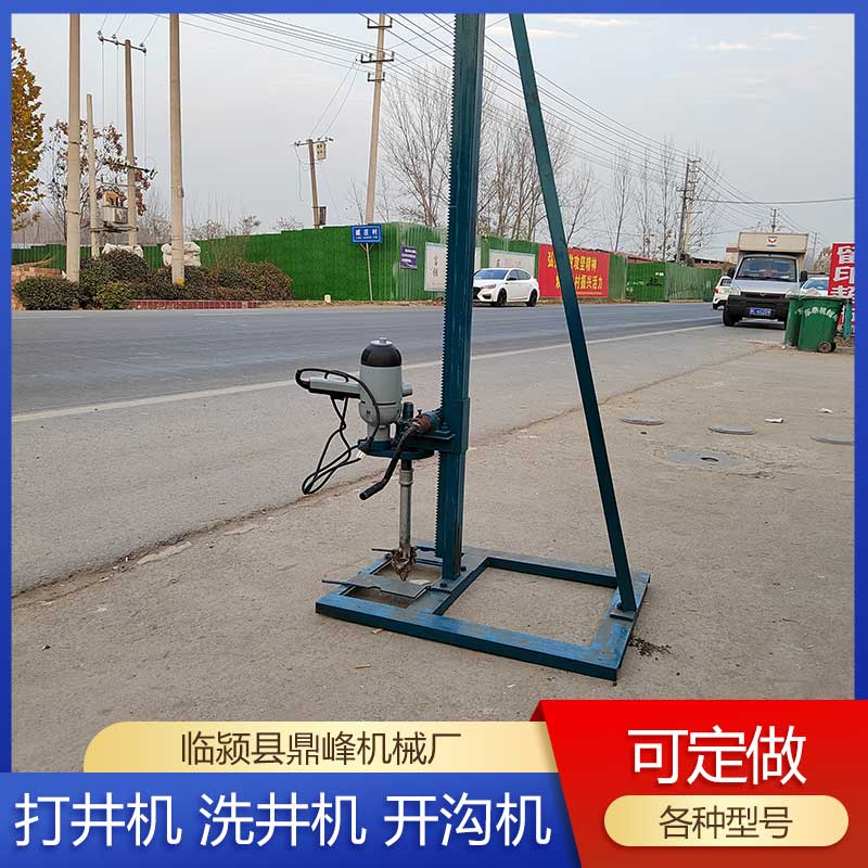 1.5KM简易式架子打井机,开口6-20公分,深度10-30米,钻杆1寸采用镀锌杆,架子高度2米,架子轻1-2人操作,适合泥土层,土层