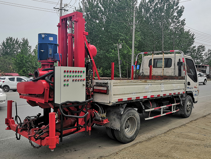 轻卡车带五寸正反循环打井机,采用轻卡车带的。大泵电机采用15KW,主电机采用11KW。车兜里面放置钻杆。架子采用液压伸缩架。移动方便,操作简单,效率高!