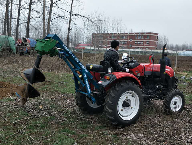 拖拉机带的植树挖坑机以拖拉机上的动力输出,以拖拉机上的副叶轴传动带动传动轴的转动,从而带动树坑机钻头钻动实现挖坑 作业的完成,口径大小在20-1米之间,深度为70公分。 主要有4大件组成:树坑机架子、传动轴、变速箱、钻头,详情咨询厂家13721300659